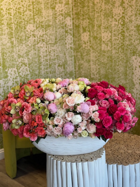 This stunning oversized arrangement is the ultimate statement piece,overflowing with everyone’s favorites-Peonies, garden roses, roses, Orchids ,spray roses.Perfect for making someone’s day unforgettable.
